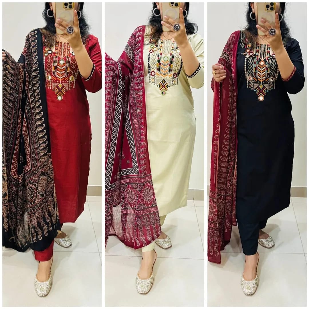 ✨ এমব্রয়ডারি ডলার ওয়ার্ক থ্রিপিস – নরম সুতি কাপড়ে এলিগ্যান্ট ডিজাইন